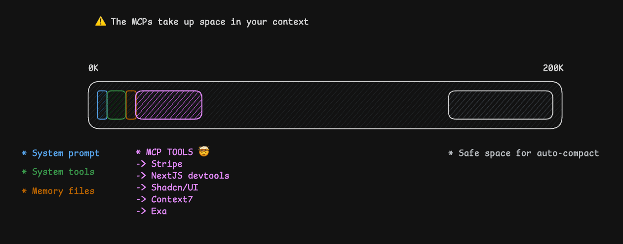 Chaque MCP prend de la place dans ton contexte. Limite-toi à 2 MCP maximum. Context7 + Exa, c'est tout ce dont tu as besoin.